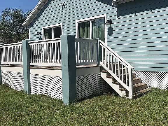 CUTE, CUTE beach cottage, PERFECT for a primary residence or beach getaway! Just 4 blocks to the beach for an easy walk or bike ride! Built in 2018, this little charmer is loaded with character w/the covered front porch & lap siding w/shake shingle accents. Inside is found a spacious floor plan w/a HUGE great rm, dining space, convenient kitchen, & split bedrooms! This home shows beautifully w/high ceilings, premium wood-look vinyl plank flooring in a ''beachy'' gray finish, & gorgeous coastal paint colors! The spacious kitchen features white craftsman-style cabinetry with soft-close doors & drawers, shiny granite countertops, a center food prep island, & stainless appliances! Check out the expanded Master suite w/walk-in closet, dual sink granite vanity, & walk-in shower!