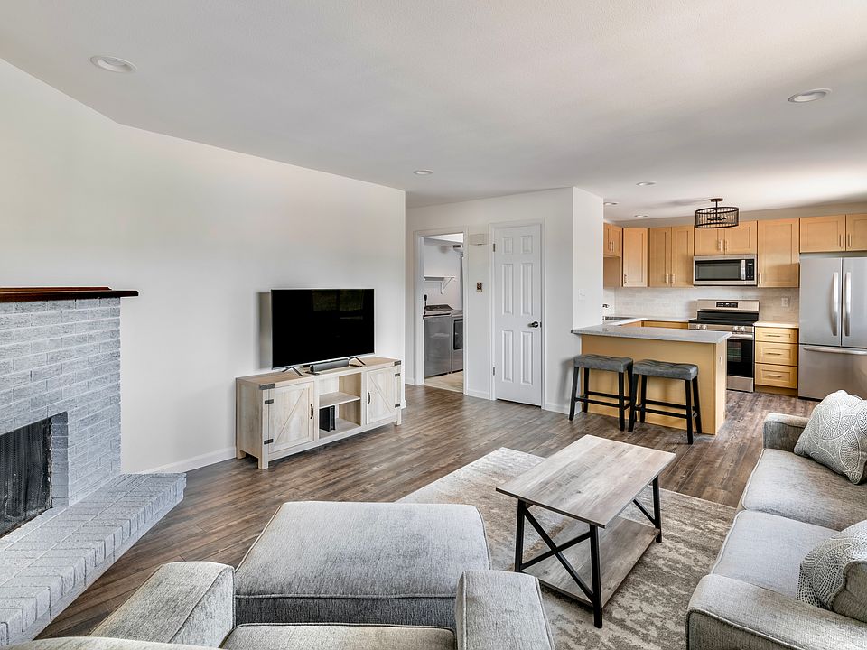Newly renovated, fully furnished 2-bedroom apartment offering a perfect blend of convenience and comfort for longer stays. Nestled in a peaceful neighborhood near F.E. Warren AFB, downtown Cheyenne, and Frontier Park. With modern amenities and thoughtful details, this bright and stylish home-away-from-home is ideal for traveling professionals, couples, or small families. Located on the upper floor, this apartment features lots of natural light. The master bedroom includes a luxurious king-sized bed with Smart TV, plus a dedicated workspace with 22-inch monitor and sit/stand desk. The second bedroom, equally comfortable and well-appointed, hosts a queen-sized bed. Both bedrooms offer a closet and dresser for ample storage, along with room-darkening curtains. The heart of the apartment is the open-concept kitchen, which overlooks the living area, creating an inviting space to cook and socialize. The kitchen is fully outfitted with modern major appliances, as well as a Keurig, electric kettle, toaster, and blender. It also includes a countertop peninsula with two stools, perfect for quick meals or a cup of morning coffee. The cooking amenities provided make it easy to prepare meals just as you would at home. The living area has a comfortable couch, lounge chair and coffee table, along with TV dining trays. The entertainment center features a 55-inch smart television with accompanying sound bar, making it an ideal spot for relaxing evenings at home. The unit also features a new, full-sized washer and dryer, and a renovated bathroom with shower and bathtub. Outdoor space includes a front balcony. The building also offers off-street parking in a private lot. On street parking is available next to the building for larger work vehicles. The apartment's location is close to multiple grocery stores and restaurants, as well as a public golf course. Additionally, a bus stop is only a 5-minute walk away, providing easy access to public transportation for commuting or exploring. This living space is a retreat that offers a blend of comfort, practical amenities, and a prime location. It suits anyone looking to make their extended stay away from home in a pleasant and convenient neighborhood. What's included in the rent: - All utilities up to $225 per month for electricity - High speed internet (200 Mbps min speed) Available lease durations: 1 month 2 months 3 months 4 months 5 months NOTE: Additional damage protection fee of $80 per month. This fee is paid monthly in place of a large security deposit, and covers damages to the property and furnishings, as well as early lease termination protection. The fee is paid to Waivo, and does not cover damages to the personal property or vehicle of the tenant/occupant, tenant/occupant family members or guests.