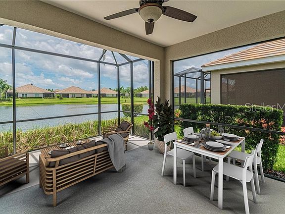 One or more photo(s) has been virtually staged. Introducing this exclusive LAKESIDE villa located in the Fairfield gated community conveniently just west of I-75 and south of downtown Bradenton. This young community features maintenance free lifestyle along with access to the community pool, recreation center and fitness center. This 2 car garage home is just steps to the pool around the corner. Enjoy your morning coffee or evening cocktail on your extended screened lanai overlooking the community lake. This well-maintained home features large wide-open floor spaces, high ceilings throughout and a trey ceiling in the living room. The kitchen appliances are all upgraded GE with slate, fingerprint free finish, including a gas stove. Granite counters accent the wood cabinets in the kitchen. The master bedroom is large, has brand new flooring and dual closets. The master bathroom has 2 separate vanities and sinks and walk-in shower. A gas hookup can be found on the back patio to connect to your barbecue grill. There is an inside laundry with a newer washer and dryer included. The home is protected with hurricane panels for all openings. Rooms sizes are approximate. Buyer to verify.