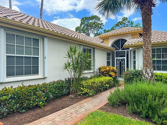This single-family home offers everything you have been searching for. Located in a gated non-mandatory country club community,Light, bright and airy, this open floor plan, high vaulted ceilings, crown moldings, along with updated kitchen, and bath describes this home. The kitchen features stainless steel appliances and granite countertops. Magnificent golf and water views and an enlarged screened patio, conveniently located across from the community pool. It is a must see...PRICED TO SELL!!