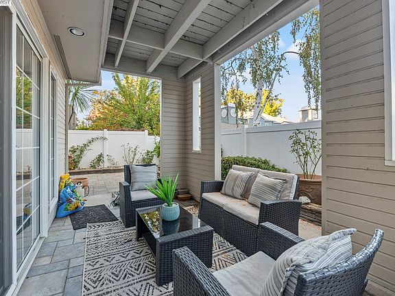 Welcome home to your private oasis in Pleasanton, entering through a gated private yard that promises both privacy and charm. Upon entering, the home unfolds into an open and inviting ground floor layout, masterfully blending the living room, dining area, and kitchen into a cohesive space perfect for daily living and sophisticated entertaining. The backyard emerges as a tranquil paradise, featuring a central courtyard, ample sunlit open areas, a cozy covered spot, and a garden adorned with specialty roses. Ascend to the upper level where three spacious, light-infused bedrooms offer serene escapes for rest and rejuvenation. This residence boasts a suite of modern amenities, including elegant hard surface floors, stainless steel appliances, and smart home features such as a thermostat and sprinkler system. Top-tier schools are nearby, including a high school rated 9/10. Leisurely mornings can be spent exploring nearby hiking trails, parks, or the nearby Stoneridge Mall, all within walking distance Commuters will love being walking distance to BART and the easy access to 580/680 freeways. Parking is ample with a two-car garage and two additional private driveway spaces, with even more guest parking. Community luxuries include a sparkling pool and spa!