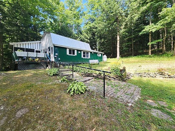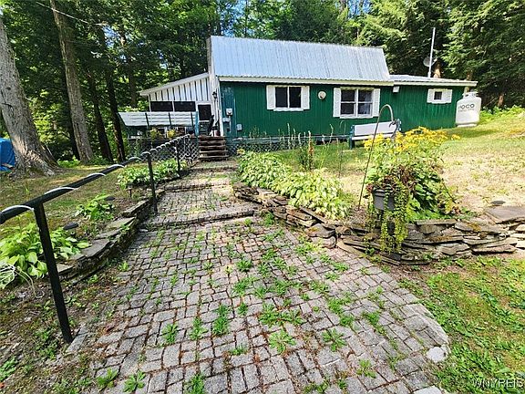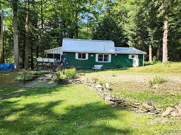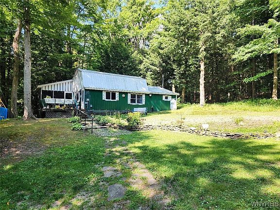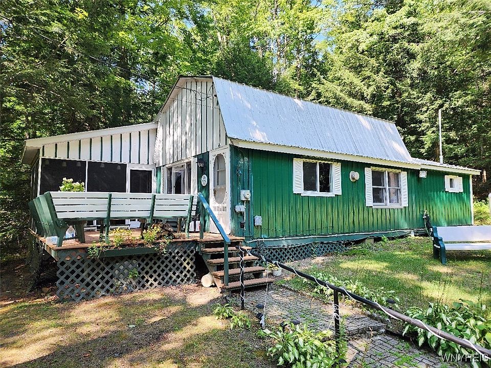 Escape to Tranquiity! Situated w/in the Little Valley Rod & Gun Club is this 2 bed, 1 bath cabin, provides a sanctuary for those seeking peace & relaxation. With its cozy ambiance, the LR has a wood-burning stove, perfect setting for warm evenings.The loft is a versatile space that can be used as an add'l bedroom, a home office or a reading nook. Step through the sliding glass doors into the patio room & be greeted by a spacious deck, complete w/ built-in benches & a seamless access to the backyard w/ a fire pit area. This outdoor oasis is great for soaking in picturesque views of the lake. Other features include: a convenient storage shed & ample parking that comfortably accommodate up to 4 vehicles and a propane wall furnace. The blend of kayaking, canoeing & paddle boating enhances the lake experience by offering various ways to enjoy the water & discover the natural beauty of the surroundings. Multiple trails throughout cater perfectly to hikers, ATV & snowmobile enthusiasts, making it an appealing option for outdoor enthusiasts & those seeking a vibrant, active lifestyle. Purchaser to pay for the membership application. Land is owned by Little Valley Rod & Gun Club.