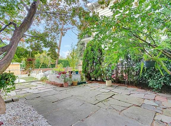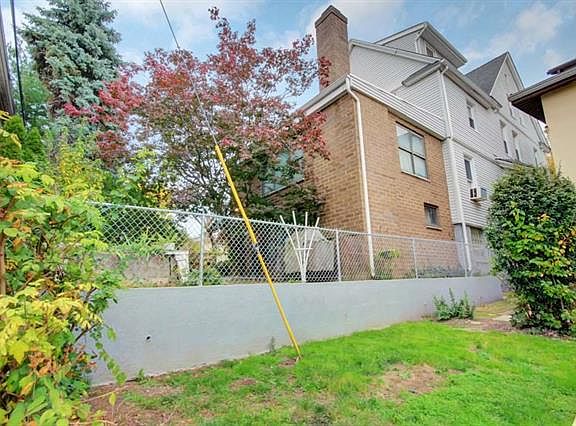 2 Family House with 1 Car Garage. Huge expanded Colonial with lemonade porch on dead-end street. Four Stories. 5 Bedrooms, 3 Full Bathrooms, 1 Half Bathroom. Semi-finished basement with Rec Room. Rear of house was expanded to included a 2 additional Den spaces connected by stairs. New Roof recently updated in past two years. 15 Rooms. Replacement windows throughout house. Hardwood floors throughout. Decorative Stain Glass windows in hallway. Four Floors of living space. Gas Heating System. New retaining wall in rear of house. Slate rear yard areas with built-in BBQ. Separate Gas Meters. Some Original details but overall well maintained.