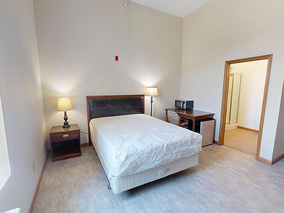 Gross lease two-story property centrally located downtown features several types of dwelling spaces, this listing is for a Dorm style dwelling. The layout includes one spacious bedroom and one 3/4 bathroom. Large window provides natural light enhancing the overall ambiance of the space. All utilities included plus trash service and wifi... Available short or long term. Enjoy a small fridge and microwave provided and supply yourself with a hot plate or air fryer and such type appliances for your culinary needs. There are common shared spaces include a living/dining room and kitchen suggestive of the dormitory-style arrangement. Coin operated laundry on site. Be sure to find the virtual 3D tour and call to schedule your private viewing and obtain an application today.