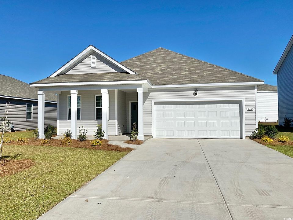 Natural gas community just minutes away from shopping, dining, and the beach. The Aria floor plan is the perfect choice for any stage of life, whether you are buying your first home or downsizing. This home features an open concept living room and kitchen that are great for entertaining along with incredible standard features including 36" cabinetry, stainless Whirlpool appliances, granite in the kitchen, and LVP flooring throughout the main living areas. This home also boasts 9 ft. ceilings, a great sized pantry for storage, a rear covered porch, and a split bedroom design creating a private primary bedroom suite! It gets better- this is America's Smart Home! Control the thermostat, front door light and lock, and video doorbell from your smartphone or with voice commands to Alexa. Tankless gas water heater, two-car garage with garage door opener, and our QuickTie framing system also included. *Photos are of a similar Aria home. (Home and community information, including pricing, included features, terms, availability and amenities, are subject to change prior to sale at any time without notice or obligation. Square footages are approximate. Pictures, photographs, colors, features, and sizes are for illustration purposes only and will vary from the homes as built. Equal housing opportunity builder.)