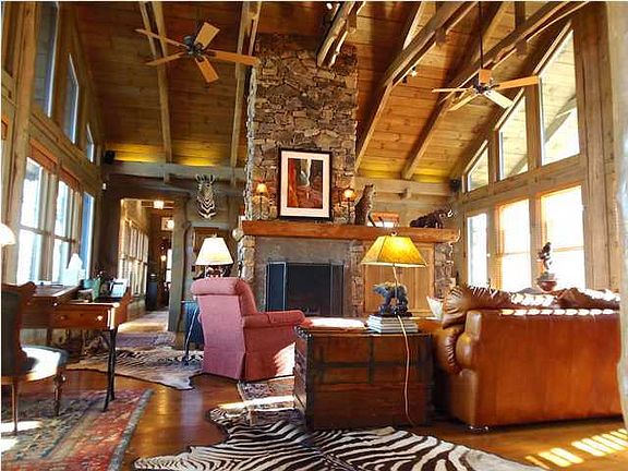100% unique, charming, amazing, rustic, architect designed home built around huge picturesque boulders, historic view over Fox Mountain, Plum Nelly, Johnson's Crook Civil War battle site. Fabulous sunsets, light @ night + never changing pastoral view of nature's master pieces, farms, church steeples, distant mountains view daytime from bluff. Watch eagles soar & listen to the silence, enjoy complete serenity & peace. Special is the volume of the gorgeous interior featuring architectural details galore,8'plank doors, beams, cathedral stained ceiling, antique & custom cabinetry, massive freestanding 2 story stone fireplace, gallery past boulder waterfall to completely secluded master suite having indoor, outdoor showers + corner jetted tub with view you'll never want to leave! 2 other pr e bedroom suites with baths + playroom + bonus/4th bedroom over garage. Generator. You name it, architect's thought of it! Add to that a detail-oriented architect who supervised construction EVERY DAY of its going up for his OWN HOME! Wow. It is truly special & endearing. Gain further peace and contentment by launching your boat on the subdivision 7 acre Lake Fawn ( private launch) or build a dock for yourself. Fishing's great, scenery exceptional & at your own front door. 1700 acres of subdivision enjoyment includes miles of hiking trails, 2 waterfalls (Singing Sisters & Tallulah Falls 75' high) & numerous lakes & ponds.A real respite.