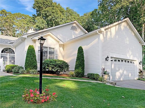 Beautiful, meticulously maintained condominium within a very close proximity to Wickford Village offering single level living at it's best! This is a very private duplex located on a cul-de-sac. An oversized maintenance free deck overlooks established perrenial gardens buffering acres of preserved open space. A foyer greets you into a sunny open floor plan leading to a formal living room with gas fireplace, built in book shelves with ambiance lighting, a dining area with cathedralled ceilings, ideal for entertaining with ease. The kitchen is completely renovated with custom cabinets, stainless appliances, dual ovens, granite counter tops and two large pantry closets - storage galore. A sunroom adjoins the kitchen with an expansive sky light and an additional gas fireplace making this room the perfect cozy get-a-way spot. The master en suite is designed with an enormous walk in closet, tiled walk in glass enclosed shower, radiant heat and double vanity marble counter tops. The guest bath is lit up with a natural solar tube, ample closet space and similar upgrades as the master bath. A laundry area is tucked away in the hallway with storage shelving. The bonus area on the lower level is set up as a potential office or third bedroom, common area for playroom or TV watching and oversized windows with a slider to a stone patio, a third full bathroom and a huge storage area along with a brand new heating and A/C system. Sellers spared no expense.