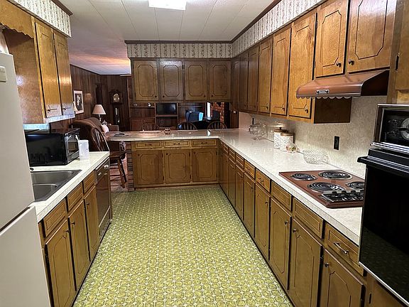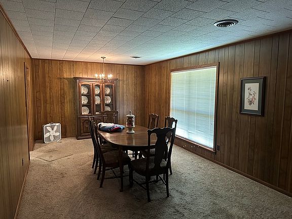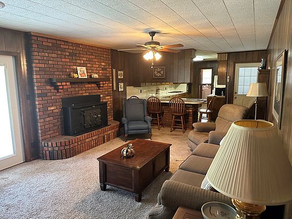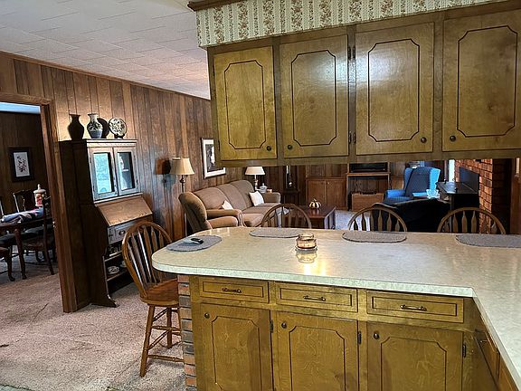 This 1975 brick ranch lays claim to 1,697 sf on 35 country acres. The 3 bedroom and 2 bath arrangement has galley style kitchen with wood stained cabinets leading to spacious laundry with built ins and freezer space. The pass through bar peeks into the cozy den with brick hearth and fireplace for a favored gathering space. But you also have a dining living room combination overlooking the front to hold the masses. The carpet throughout is neutral and comfortable. Gardening and hunting are big attractions but you may also bring a few hobbies of your own.
