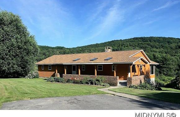 Stunning 2200sf ranch tucked away on over 20 secluded acres.Enjoy open one level living in this quality constructed custom one owner home w/lower level expansion opportunities w/8'ceiling.Main level inc a spacious eat-in kit w/new granite tops & porcelain tile flr,a stone fireplaced LR w/vaulted ceiling,hdwds & access to deck w/hot tub & breathtaking views,heated sunroom w/cathedral ceiling,wrap-around porch w/skylights,roof 2yrs.Inc a 32x48 barn w/2 animal stalls & work/storage area & MUCH MORE