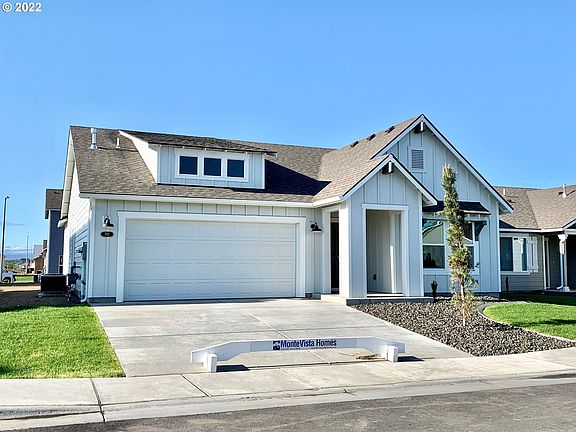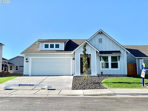 LOT:LE13 - Gorgeous modern farmhouse in the Legacy neighborhood in Hermiston built by award winning builder MonteVista Homes. The Charity is a 1900 SQFT home with 3 bedrooms, 2 baths, open living spaces and large gourmet kitchen with pantry, island, stainless steel appliances and quartz countertops. This home also features a spacious master suite with soaking tub and walk-in closet as well as high efficiency gas forced air heating, A/C, gas fireplace, and covered patio.