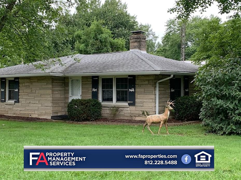 Extra large rambling stone ranch with 3-4 bedrooms 1 1/2 bath and lots of elbow room. this home has a large living area and a big rec room with fireplace and pool table in the basement, Eat in kitchen plus a bonus room, nice covered back porch, two car carport and inground pool. All freshly painted and new carpets. No pets, No smoking. The tenant is responsible for all utilities. One year lease with matching deposit. Credit, background and rental check required. Schools are Chandler, Boonville Middle, Boonville HS.