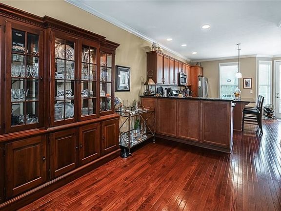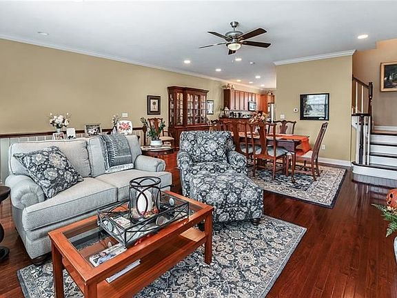 Quality built townhome in Heritage Creek offers better than new construction finishes throughout. Luxurious living room features gleaming hardwood flooring, cozy gas log fireplace, large bay window, recessed lighting & crown molding. Hardwood flooring carries into the kitchen & dining area. Kitchen has plenty of cabinet space plus a pantry. Georgeous kitchen with gas stove & center island. Oversized sliding glass door leads to large deck. Enjoy the wooded views off the the kitchen and deck allowing for privacy which is not always present in a townhome community. Upstairs you'll find a huge master bedroom w/vaulted ceiling, bay window, hardwood floors & walk-in closet. Second floor bedrooms are all spacious, well finished with crown mouldings, lovely detail throughout. The finished game room on lower level has French doors open to a large covered patio. Two car integral garage. Minutes away from the pool, playground and clubhouse. Great location near shopping, dining & Rts 19/ 79/ 76.