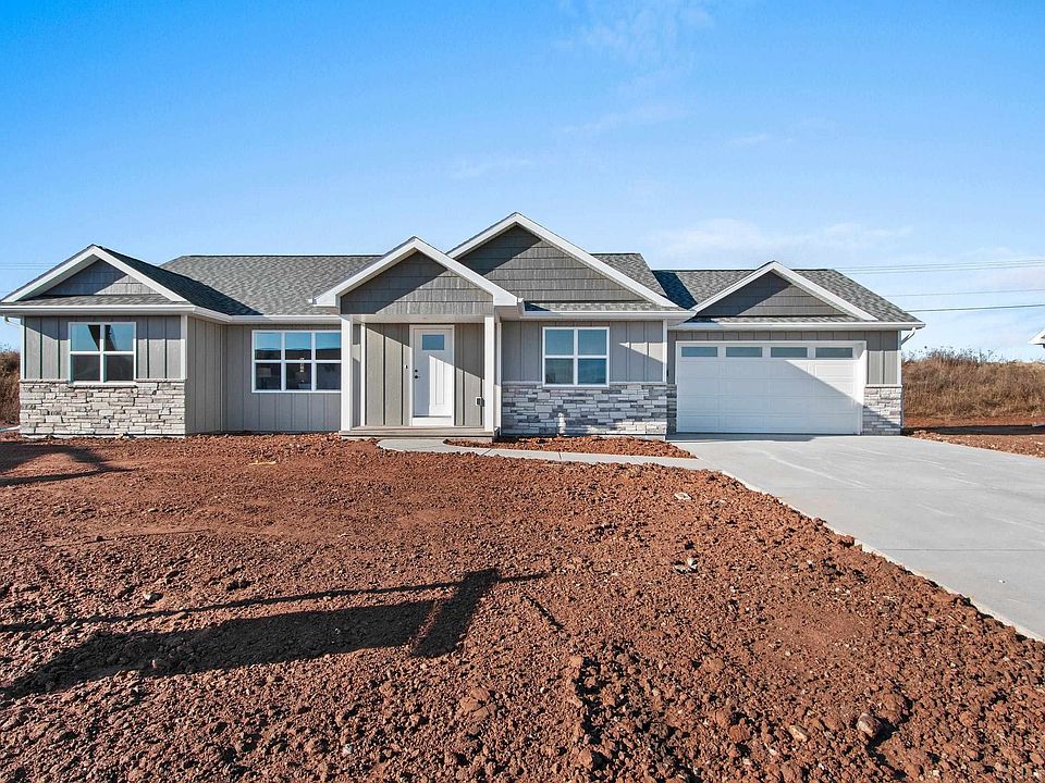 Welcome Home by Tom McHugh Construction. This home is complete and move in ready! This split bedroom design features 3 bedrooms and 2.5 baths. Amenitites included- LVP throughout main living area, insulated garage door, fiberglass exterior doors, 28ft deep garage, white trim package, power vent water heater, egress window, ideal basement finish layout with future bath plumbing, driveway included all the way to the street, plus much more. Come check out the Celtic Plains subdivision in Wrightstown by TMC. NO future street assesments, NO HOA, sidewalks included, cluster mailbox included, and the street with curb and gutter is already installed.
