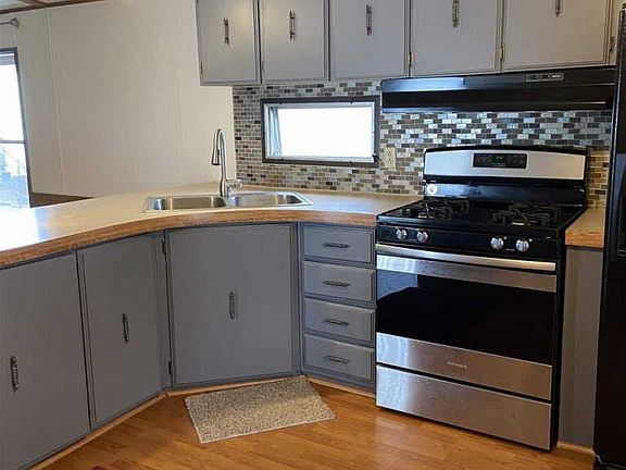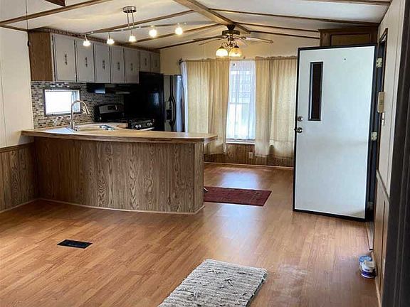 Lot fee $535.00 includes water and sewer. Re-coated roof, updated kitchen and bath, newer flooring and newer double pain windows, central air, newer appliances 12x12 shed