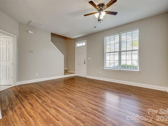END UNIT! Great location and move-in-ready. 3 beds, 2 baths townhome with bedroom on main. This home features a favorable layout, with a bay window off the living room & dining room, and convenient laundry. Beautiful kitchen with granite countertops and stainless steel appliances with built-in microwave. Beautiful wood laminate floors on main level with lots of windows for natural light. Private back patio. The upper level has two spacious bedrooms, an adjoining full bath. Small landing that can be used as flex space or home office. Close proximity to the light rail and short commute to Uptown Charlotte. HVAC unit was new in 2024. Rental cap has already been met in Kings Creek. There is a rental waitlist that the new buyer can get on once they purchase the home. HOA are unsure of the time frame as to when any openings would become available on the approved rental list. Two parking permits will be given to the new owner at closing. HOA dues include water bill.