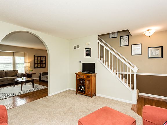 This Beautiful 4 bed 2.5 bath home will not disappoint you from the time you pull up.There is prof landscaping & a large covered porch.This 2story has a unique layout.There is a living room as you walk in with an archway that leads to a Large family room with wood flooring &a huge bay window.You will fall in love with the open floor plan! There is a large kitchen,a bay in the breakfast room and a half bath.The kitchen has plenty of cabinets,a corner sink, & a large pantry. The wood floors lead throughout the open area. Making your way through the breakfast rm there is a large private deck.The upper level features the Master bed; master bath& double closets.There is upper level(main floor)laundry w/ the convenience of being near the bed rms.There is another full bath and 2 additional large bedrooms. Making your way to the lower level there is a finished bedroom with an egress window.The Lower Level is a walk out and has a rough in. There is a nice yard and a large freshly stained deck!