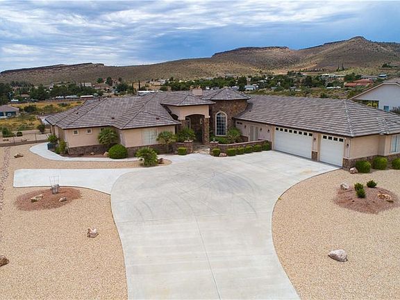 Stunning Custom Home with incredible City & Mountain Views on quiet cul de sac in highly desired neighborhood in the Kingman Foothills. 4 bedrooms (or 3 + Office), 3 full Bathrooms, Cozy Den with Wet Bar and Gas Log Fireplace, Spacious, Open Chef's Kitchen with Gas Stove Top, Convection Oven, Microwave & New Refrigerator, Wraparound Corian Breakfast Bar and Built-in Desk. Living Room, Formal Dining Room with chandelier, Plus Casual Dining area with those breathtaking Views! Great Room with Pool Table and related furnishings included. Spacious Master Suite with Spa Tub, Walk-In Shower and 2 Walk-in Closets. 29' Deep 3 Car Finished Garage with Built-in Shelving. Large, Cement Driveway with RV Parking area. Front Patio with Slate Tiles & Water Feature. Central Vac, Water Softener, 75 gal Water Heater with recirc pump. Extended Covered Patio to enjoy the Views! Backyard continues behind wall down slope. Furnishings negotiable. Showings by appt only.