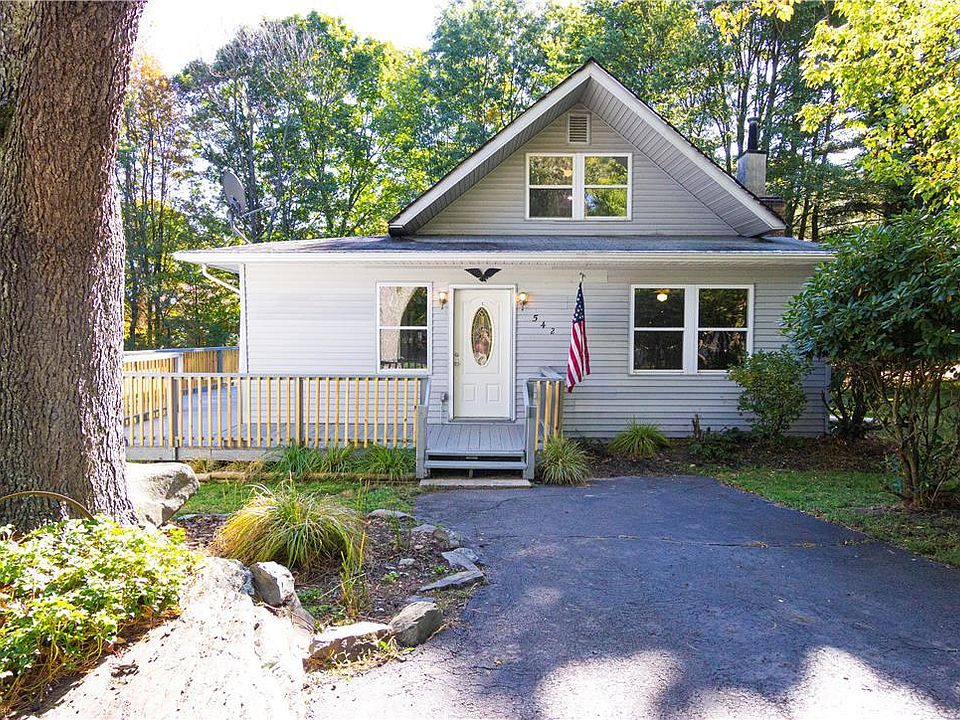 Located in the Pocono Highland Lake Estates, this home has all of the benefits of being near a lake without the high HOA fees (Only $75 PER YEAR!!). Perfect to use as a vacation home, investment property, or primary residence, this home is multi faceted. New floors, new hot water heater, and newer windows surround a gorgeous stone fireplace and mantle that is awaiting your choice of fireplace insert. Book an appointment today because this one will not last long!!