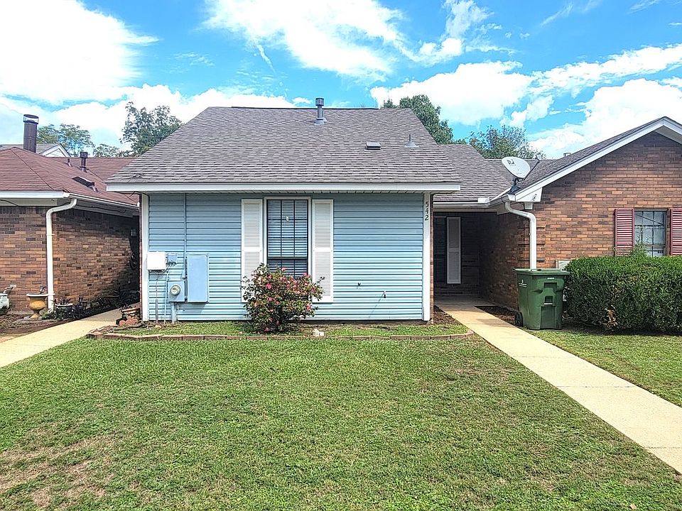Adorable 2- bedroom 2 bath split floor plan town home located across from Alabama Christian Academy. This townhome has been freshly painted throughout. As soon as you walk in you will notice how spacious the den/family room is, with a trey ceiling, and a large window with a great backyard view. Wood laminate flooring in the den/dining area, kitchen, and entry, LVP flooring in both bedrooms and bathrooms. The kitchen is open to the dining area, den/family room and features a breakfast bar and lots of cabinets. The Primary bedroom is located on the back side of the town home. It features a walk-in closet as well as large window for a great view of the backyard. The primary bedroom has its own bathroom. The primary bathroom features a large vanity with new vanity lights and mirror, tub/shower combination. The second/front bedroom features a nice size closet with double doors. The hall full bathroom also features new vanity lights and mirror and is conveniently located off of the den/family room. The laundry area with washer and dryer is located in the hallway by the backdoor. The backyard is fully fenced with a patio. Parking is located in front and behind the townhome. NO SMOKING inside this property. This property does not accept Housing Vouchers.