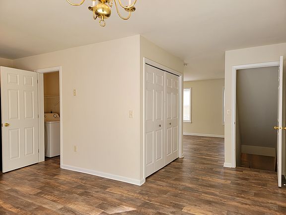 Located at the end of a cul-de-sac street nestled away in E-town, this end unit townhome offers a bright living room with plenty of windows for natural light, an open kitchen and dining area with doors to a rear patio, and a half bath and laundry room on the main level. The 2nd floor offers the main bathroom with double bowl vanity and three bedrooms, including a primary bedroom with two closets and access to the bathroom. The entry level offers a 1-car garage and unfinished basement space for storage. The yard and patio are backed by trees for a private and peaceful getaway. With so much to offer in such an ideal location, this home is just waiting for you to make it yours! 1 pet up to 25lbs (at maturity) permitted with additional fees One year contract, renews month-to-month after the first year.