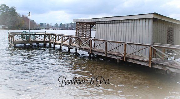 What a wonderful lake retreat!!! This listing is just perfect for a lake escape!! The exterior is low maintenance and has wonderful main body lake views plus a pretty backyard and beautiful trees!!! It also has a workshop and plenty of storage buildings PLUS there is a concrete seawall, boathouse and pier! Inside, it only gets better!! The interior features 3 bedroom and each bedroom has its'own full bath!! Nice living room with stone fireplace, den with lake views, kitchen with nice countertops, plus a great dining/sunroom! In addition, the most wonderful features are that it did not flood 1994 AND it's all ONE LEVEL!!!This one is a MUST SEE!!!