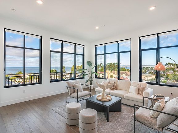 Prepare to be dazzled by the crème de la crème of luxury condominiums. A luminous corner unit with sky-high ceilings and walls of windows granting jaw-dropping views of the ocean and the city of Pacific Grove, this property resides within the famous Holman Building on Lighthouse Avenue. Savor the rare privilege of living inside a gorgeously renovated local landmark in the heart of downtown Pacific Grove. Living here means being a neighbor to your favorite restaurants, galleries, shops and hot spots, including a movie theater, a library, and multiple parks. The property itself is a masterwork of modern refinement, with buttery hardwood flooring, a radiant palette, and custom finishes in every room. The brilliantly conceived layout guides you on a climactic journey starting at the front entry, progressing down a hallway past two generous bedrooms, and culminating in the core of the property: a vast, open concept living room and kitchen with views you simply will not find anywhere else. At night, the space pulsates with the cosmopolitan flair of city lights. Step from either the living room or primary bedroom onto a private balcony, drawing in the heady night air and listening to the eternal roar of the sea beyond. Welcome to utter bliss on the inimitable Monterey Peninsula.