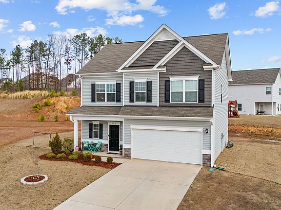 3 bedroom home in a fantastic Sanford location! Open floor plan! The island kitchen has granite counters and stainless appliances. All bedrooms and laundry room are upstairs. The primary bedroom is 17X13 and the bathroom features double vanities, a walk in shower and a large walk in closet. All of this on over 1/3 acre in a quiet cul de sac. Relax after work on the covered rear patio! This home is centrally located with quick commutes to Raleigh, Fayetteville and Pinehurst.