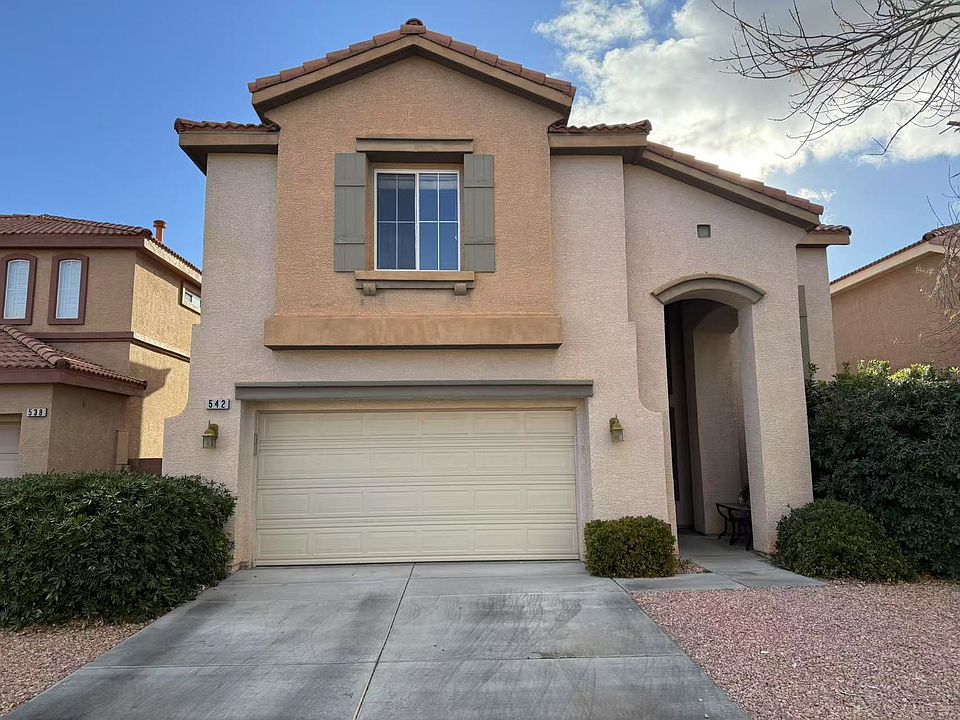 Welcome to this FANTASTIC 2 STORY HOME, nestled in the heart of vibrant Summerlin 2 minutes to Costco, walk distance to middle school and high school, the elementary school bus stop is nearby the community gate. OPEN SPACIOUS FLOOR PLAN, KITCHEN OPENS UP INTO OPEN DINING ROOM AND LIVING ROOM AREA, highlighted by a large windows that bathe the space in natural light. This residence offers a perfect blend of comfort and versatility. The gourmet kitchen is a culinary masterpiece, complete with sleek granite counter tops, premium appliances, and ample cabinet space. Ascend the beautiful vinyl staircase to discover the luxurious primary bedroom, accompanied by two additional bedrooms. Setting foot outside, the landscaped and fully fenced backyard is complete with a welcoming covered patio, creating an idyllic setting for delightful dining and gatherings. Experience the epitome of modern living in this Summerlin gem and schedule your private showing today! NEW PAINT THRU OUT AND NEW FLOORING. THIS HOUSE IS READY FOR MOVE IN. lease duration: 1year or 1 year+ No smoking, No curb parking. Homeowners are allowed to inspect their property twice a year and give tenants three days' notice before walking through. Renters are responsible for replacement of AC filter and salt for the water softener.