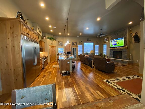 Custom home with heated garage 43' RV Bay, insulated 14'X20'&10'x10' commercial doors & 2nd story storage. Kitchen with 48'' Range, Dual Refrigerator and Freezer, gorgeous granite, Alder full overlay, soft close Cabinetry and large pantry. Owners space with large freestanding tub, 5'x6' tiled shower with glass enclosure, dual sinks, 16' walk in closet with shelving. Great room with 12' ceilings, Fireplace with rock accents and solid mantel, and views to die for. Plus a second living space. Solid hardwood floors throughout. Spacious patio area with covered exterior living/kitchen area. Fenced and fully landscaped.