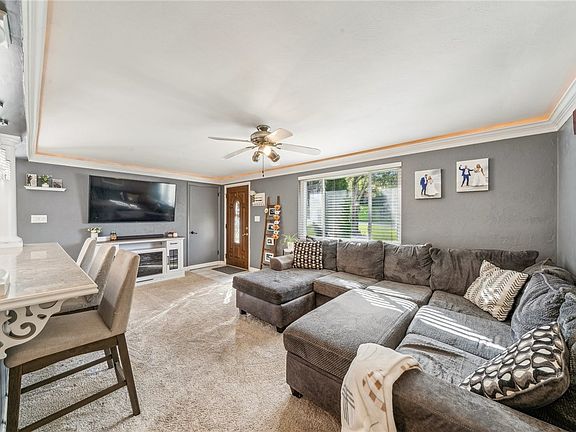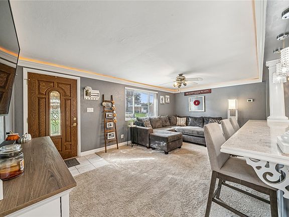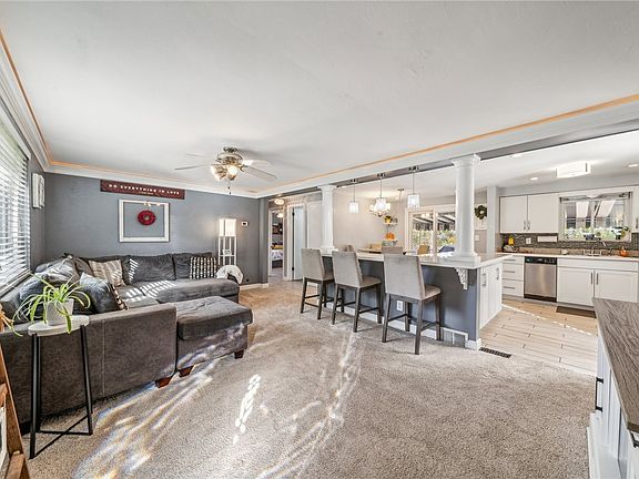 Step into this cozy, level-entry gem that's perfect for easy living and entertaining. The open-concept layout creates an inviting space for gatherings, enhanced by crown molding and recessed lighting, adding an elegant touch. The fully equipped kitchen, features all SS appliances, is ideal for all your culinary needs. You'll love the spacious rooms, including a living room with newer carpet (just 1 y/o) for added comfort. Sliding glass door with privacy blinds leads you to a serene deck with an awning, offering a great spot to relax and enjoy the outdoors. The property also includes an invisible pet fence, ensuring a safe play area for your furry friends. Downstairs, you'll find a finished game room with LVT flooring, built-in bar, half bath, and a laundry closet for ultimate convenience. Freshly painted full bath on the main level adds to the move-in readiness of this home. A 2-car garage and paved driveway provide ample space for parking. Perfect blend of comfort and convenience!