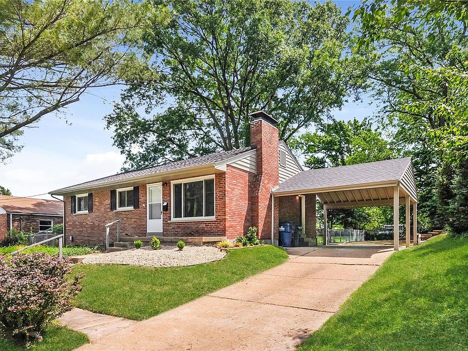 Rock Hill Ranch with incredible access to Old Webster, Manchester Rd., Shopping / Dining at McKnight Crossing, Tilles Park and more! Updated kitchen with stainless appliances, white cabinets and solid surface countertops. Refinished hardwood floors throughout. 3 bedrooms, 1 full bath, full basement, carport and additional parking behind home. Hard work has been handled here - now just bring your creative ideas and make it your own - new roof and A/C in 2021.