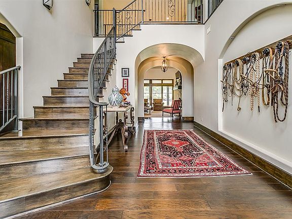 At Necktie Ranch, a pasture-lined driveway welcomes you to this stunning 407-acre horse and cattle ranch. Donning a metal roof, the recently remodeled 4-bedroom home has a large downstairs master suite, open kitchen and dining and office with 3 bedrooms up. Every detail was carefully considered including the 6-stall show barn with apartment, tennis court, sparkling pool, covered outdoor kitchen and connected 1-bed,1-bath casita-pool house. An additional home lies privately on the east side of the ranch. The home site is surrounded by land that embodies history--from the Ft Worth-to-Ft Richardson trail to the head water of Grindstone Creeks which bisects the ranch. The possibilities here are endless.