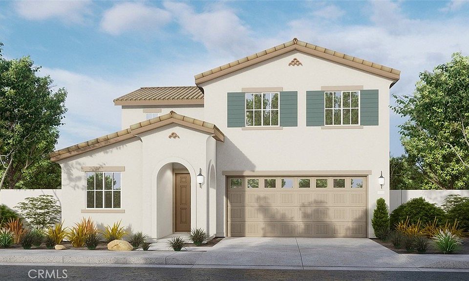 NEW CONSTRUCTION - QUICK Move-in home in San Jacinto with SOLAR and BACKYARD LANDSCAPE included! This beautiful Spanish exterior façade 2-story home has a DOWNSTAIRS bedroom and full bathroom, Great Room, Dining area and the island kitchen with breakfast bar has a walk-in pantry, granite countertops, and stainless-steel built-in appliances. Three bedrooms and 2 bathrooms with a laundry room upstairs. The upstairs Main bedroom is large with ensuite bath that has a dual vanity, walk-in shower, and nice size walk-in closet. The home comes complete with White shaker-styled cabinetry and DESIGNER luxury vinyl plank flooring throughout. You'll also find a direct access 2-car garage PRE-PLUMBED for an electric car! This truly modern home has all the SmartHome features you would expect and, is FULLY LANDSCAPED AND IRRIGATED in front and back yards. Arbor at Starling Place is situated close to neighborhood parks, shopping, and freeway access. We anticipate a May 2023 move-in...we can't wait to WELCOME you HOME!