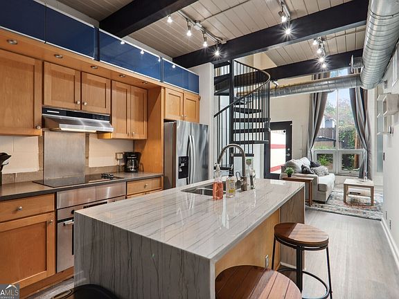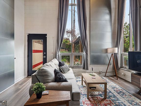 Fully Furnished Rental. Explore industrial-modern charm in the heart of Old Fourth Ward! Gated boutique building with a private backyard, gazebo, and deck. Prime location - walk to restaurants, Beltline, Ponce City Market, and more. 1BR, 1.5BA condo with kitchen/living on the main level. Soaring 20 ft. ceilings, spiral staircase to bedroom, bath, and owner's closet. Urban oasis backyard with a gazebo and deck. Features include hardwood floors, stainless steel appliances, and unique design elements. A perfect blend of luxury and Old Fourth Ward character. Copyright Georgia MLS. All rights reserved. Information is deemed reliable but not guaranteed.