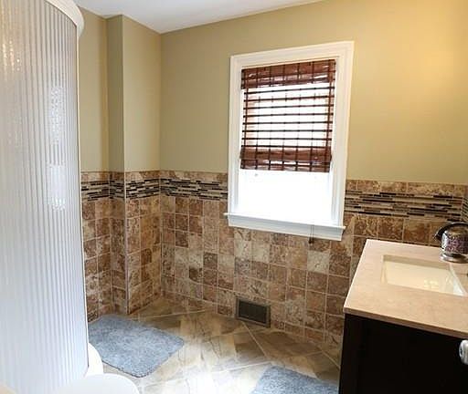 Remarkable completely remodeled over sized cape. This home needs nothing! Beautifully designed kitchen and bathrooms. Gleaming cherry hardwood floors through out. Home features a first floor bedroom and two very large bedrooms on the second floor with ample closets and largest bedroom with one standard and one walk in closet. The basement features 8 ft. ceilings and dry, perfect for expansion or storage. 1 car garage and two driveways for plenty of off street parking and a cozy fenced in back yard. First showings will be Saturday July 29 at 12-1 pm open house.