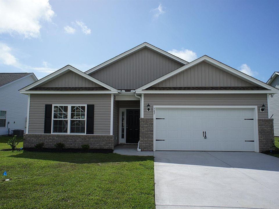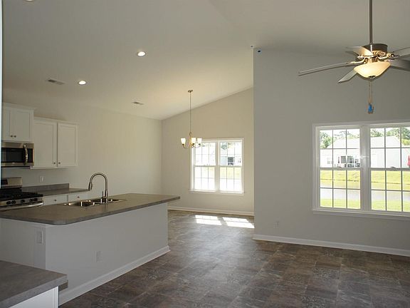 Beautiful Topsail floor plan in the new Ocean Palms community. This terrific open floor plan, 3 bedroom, 2 full bath home will have tile look vinyl flooring in the family room, kitchen and dining area, under the soaring vaulted ceiling, and comfortable carpet in the bedrooms. Stainless appliances, staggered-height Shaker-style white painted cabinetry, laminate counters and a convenient breakfast bar combine to give you the wow factor you're looking for, and abundant recessed lighting plus two large windows in the adjacent dining area flood the room with light. A French door in the dining room leads to the covered rear porch and the large separate patio beyond. The spacious master retreat features a long vanity, an oversized walk-in shower, plenty of storage in the linen closet and a huge walk-in closet, plus a tray ceiling. Two additional bedrooms and a full bath are tucked off on their own hallway, for privacy. All of the homes in Ocean Palms come standard with the luxury of natural gas (tankless water heater, gas heat, and gas range). The two car garage is completely trimmed and painted, with an added storage closet and a floored attic storage space is accessed by drop-down stairs. Ocean Palms is conveniently located near shopping, restaurants, schools and world class medical offices and hospitals, and only a short golf cart ride to Surfside Beach's gorgeous beach and the beautiful Atlantic Ocean. Other floor plans and inventory homes may be available, and CUSTOMIZATION OF FLOOR PLANS IS POSSIBLE!!! Community Pool and Cabana now open! Photos are of a completed, similar home and may have different features.