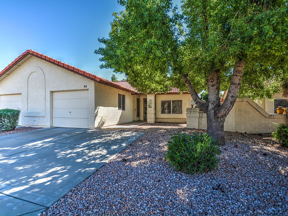 Home is on a N/S lot. 2 bedrooms, 2 bathrooms, family room with vaulted ceilings, eat in kitchen, 1 car garage, covered screened in patio. Low maintenance backyard. All in one washer/dryer and refrigerator included. Camino Del Rey is a few minutes from the freeway, hospitals, restaurants, shopping and more.