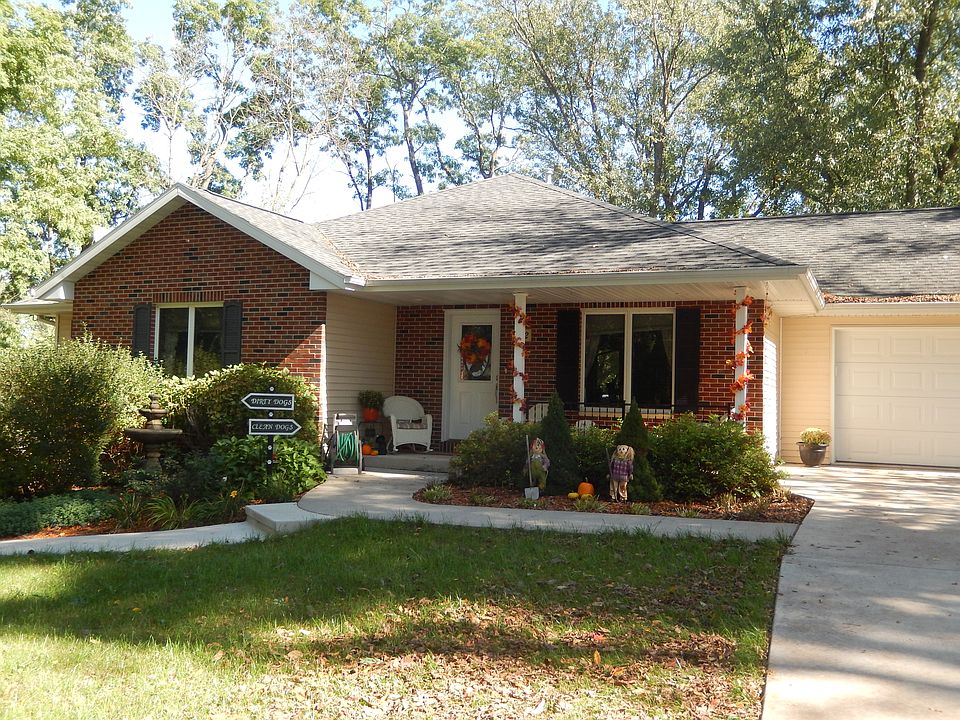 Beautiful ranch home located in a private setting among mature trees. Some features of the home include a whirlpool tub in master bathroom, gas fireplace, central vacuum system, under cabinet lighting, fenced back yard, recently finished concrete driveway and back deck with capped garage.