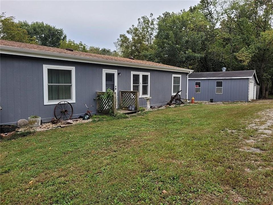 Lots to offer here! 5.5 acres that includes 3B/2B manufactured home on block foundation w/crawl space and unattached 3 car garage with lean-to Great location for lots of privacy, just over the hill from Truman Lake and the best crappie fishing and hunting grounds ever! Property lays fairly level with small pond, 3 chicken coops, shed, partially fenced, some timber with trails and lots of room to make it your own retreat. Home has been maintained including recent: added water line & electric in garage to shed, comp roof in 2020, seamless gutters in 2023, new thermal windows in 2023, and 25 yr warranty solar panels in 2023 that have provided savings galore on electric bill. Fiber Optics is available! 2024-11-10