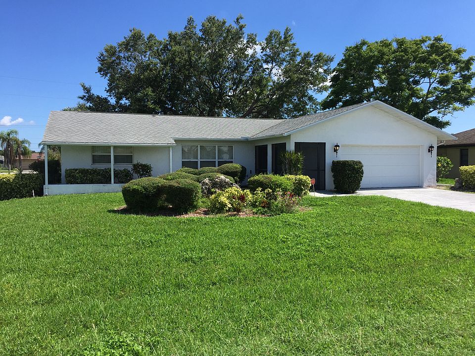 Very well kept 3+Den/2 Bath right across from gulf access property. This is a large sought after corner lot that has southern exposure and plenty of room to add a pool if desired. Large screened in lanai with access from both the living room and family room. The laundry room was converted into a small den with built in desk and cabinets. Recently updated kitchen with new cabinets and countertops. Large master bathroom with a new sink and vanity. Brand new carpet throughout bedrooms and fresh paint. Must See - this property will go fast!
