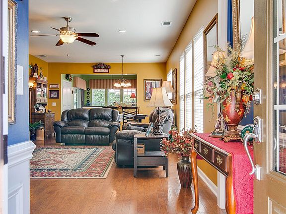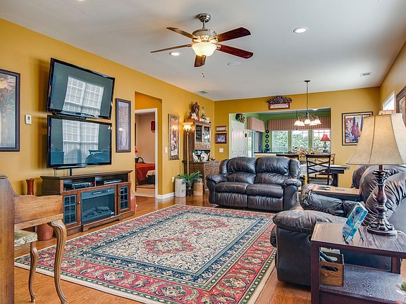 Pine Springs Floor Plan loaded w/upgrades, Covered front porch, 3 bed rm, 2 bath, hardwood floors. Foyer w/wainscoting trim & crown molding, Spacious living rm with ceiling fan, speakers throughout, dining area, Kitchen w/granite counter-tops, back splash, shelf pull-outs, ceiling fan. Tiled screened porch. Private extended patio w/fountain.