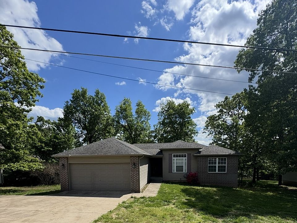 Welcome to your new home in the charming Kimberling City, MO! This delightful single-family home offers three spacious bedrooms and two bathrooms within a generous 1,600 square feet of living space. Built in 2003, the property showcases a classic brick exterior and a welcoming front porch, perfect for enjoying the quiet residential setting surrounded by mature trees. Key property features include a well-maintained front yard, an attached two-car garage, back deck and large windows that fill the home with natural light. The property is designed for convenience, featuring laundry hook-up facilities and central heating and cooling for year-round comfort. Explore this inviting home today, and take the first step toward making it your own! Schedule a viewing and discover the cozy lifestyle awaiting you in Kimberling City.