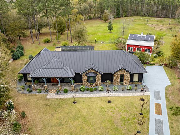 Stunning 3 BR 2.5 Bath custom pool home offering elegance and comfort. Situated on 7 landscaped and manicured acres, fenced and cross fenced. Meticulously maintained both inside and out. 10 ft ceilings, 8 ft doors, large windows, with upscale finishes throughout. Gourmet kitchen equipped with premium appliances, ample custom cabinets, spacious island with plenty of counters for entertaining. Primary suite with luxurious en-suite bath, direct access to the backyard, screened in pool and hot tub. An additional bonus room could serve as the 4th bedroom. Energy efficient with solar, electric car charging station. Great possibilities with the two story barn with attached greenhouse, loft storage, and stall. Enjoy a country lifestyle in this luxury home.