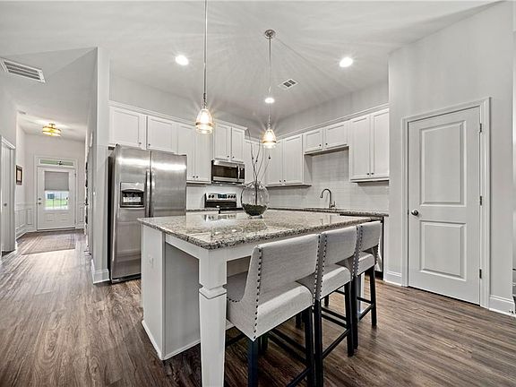 PERFECT ONE LEVEL LIVING IN THIS GORGEOUS ONE YEAR OLD HOME! This BEAUTIFUL NO STEPS FLOOR PLAN IS JUST THE ONE YOU HAVE BEEN LONGING FOR! You will be so excited to entertain family and guests in this lovely kitchen that features beautiful white cabinetry, granite counters,pantry, upgraded lighting and faucet. Plenty of space here for multiple cooks. Check out this island outfitted with drawers, cabinets and electrical. Spacious light filled family room is a delight, featuring great fireplace and overlooks the fantastic covered back porch. Relaxing nights will be enjoyed in this master bedroom. Master bath features oversized walk in shower, tile floor, double vanities with plenty of counter and storage space. Great walk in master closet. 2nd bedroom has gorgeous natural light and is currently being used as an office. Third bedroom is oh so pretty! 2nd bath has tub/shower. Spacious laundry room. Relaxing summer afternoons and evenings are perfect on this great covered back porch. Sit a spell on the covered front porch and strike up a chat with the neighbors. HURRY TO SEE THIS ONE BEFORE IT IS GONE!