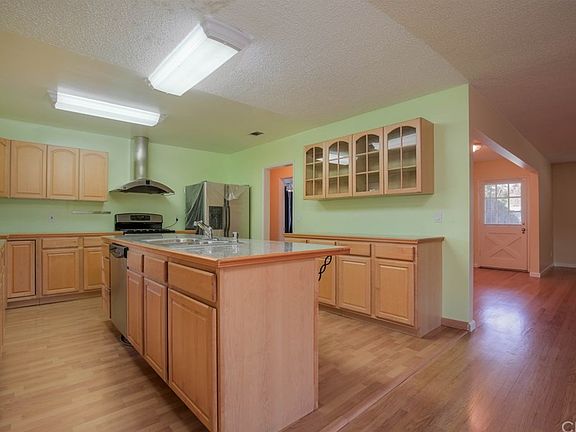 Located in the rolling hills of Redlands, this charming ranch-style, single-story home is within a well-established and quiet neighborhood. This 3-bedroom, 2-bath, 1,895-sq.ft. home has recently been partially remodeled, but you have opportunity to further update it and make this house your home. Newly remodeled kitchen with granite tile counters, plenty of storage in the new cabinets, stainless steel refrigerator and stove with exhaust hood, and large island with sink and room for bar seating. Entertain easily with the open floor plan: the kitchen is open to the rest of the living space, and the dining/family room and living room area is only partially separated by a two-way gas fireplace, with access from the dining room to the backyard through a new, wide sliding glass door. Wood flooring, ceiling fans and plantation window shutters throughout. New sink vanities and other updates have been installed in the bathrooms. With a spacious backyard and easy access for RV and additional parking on the side, youâll have plenty of room in this charming home! Close to surrounding shopping, Redlands Country Club and I-10 freeway.