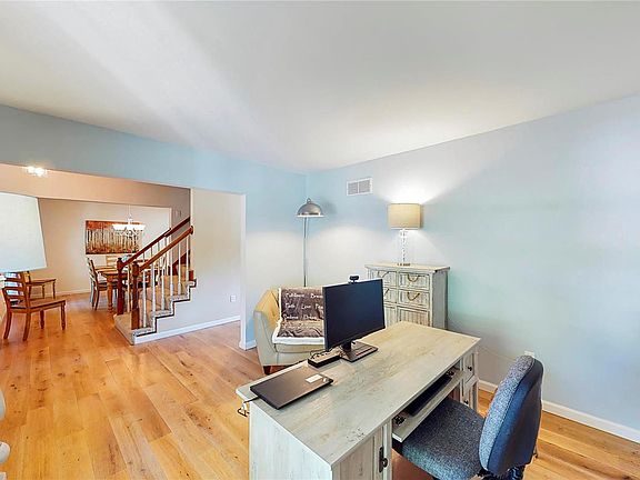 Open Sunday May 15th from 1-3 pm. Updated main level includes new flooring, new lighting, and kitchen. New kitchen includes stainless steel appliances, solid surface countertops, recessed lighting. First floor office features new built in cabinets. Front dining room ready for your next big gathering. Family room includes a wood burning fireplace and bay windows to let in the natural light. Main level laundry and half bath. Large primary bedroom suite with oversized closet. Ensuite bathroom has double sinks, separate bathtub & shower. Upper level includes an additional hallway bathroom and three bedrooms. Amble finished basement has room for an office, full bathroom, recreation room and walk out with sliding glass door. Need a workshop for a hobby? Check out the 3 Car Over Sized Dry-walled & Insulated Tandem Garage w/EXTRA outlets, Mud Sink, & shelves. Outside you'll find an enormous 19X16 Composite Deck and plenty of room for entertaining! Lush, green yard with room to play and enjoy.