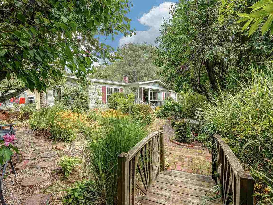 Original structure is one floor and mobile/manufactured. Large brick wall/divider with dual chimneys between the living room and kitchen. Kitchen has an antique wood cookstove and Hoosier cabinet. Living room has a chimney for a potential woodstove. Addition in 2000 is wood-frame construction of 2 floors, Top floor has an in-law apartment, bottom floor/basement has a fireplace in the family room with walk-out sliding doors, office/sewing room, and laundry room.