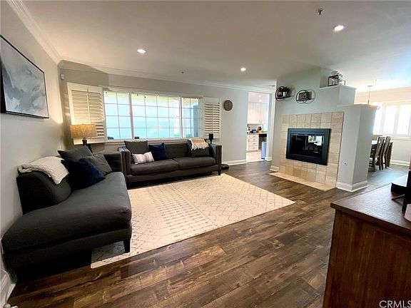 Tastefully upgraded condominium located in The Hills at Yorba Linda community. This desirable lower-level unit features weatherproof laminate wood and tile flooring, crown moulding, and recessed lighting throughout. The kitchen is equipped with stainless steel appliances and soft close cabinets. Energy efficient dual pane windows are complimented by shutters throughout the home and sliding glass doors lead out to an enclosed, wrap-around patio area featuring a separate laundry room. Features also include a double-sided fireplace complimenting the living room and formal dining area, 2 walk-in closets, and a storage room. Amenities include pools, spas, tennis courts, gym, clubhouse, billiards, and playgrounds. Upgrades to community pool and spa areas in progress. This turn-key home is bright, spacious, and situated in a great location! Don't miss this opportunity to make it yours.