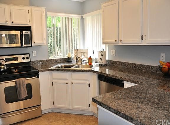 Check out this wonderfully appointed 3 bedroom 2 bath ground level condominium situated in 'The Hills' a desirable private and serene area of Box Canyon. Crown molding, a beautiful color palette with neutral carpeting, ceiling fans & canned lighting. The Kitchen features stainless steel appliances and sink, granite counters, stove, and dishwasher. The Living room with dual fireplace that is also viewable from the formal dining area. Two of the 3 bedrooms feature walk-in closets. Large master bedroom with private access to patio. The covered patio is spacious and extends from the kitchen to the master bedroom and is large enough for family gatherings. Private washer & dryer room. HOA includes access to multiple pools and spas, fitness center, clubhouse, tennis courts, a tot lot, paid water and trash and plenty of parking!!. The grounds are very well-maintained with lush green landscaping. Located close to Box Canyon Park, hiking trails, close to award-winning schools, Savi Ranch shopping center, and easy access to the 91 Freeway and 241 Toll Road.. Easy freeway access.