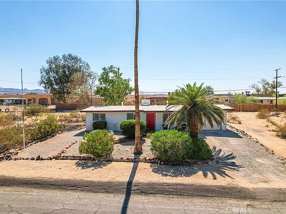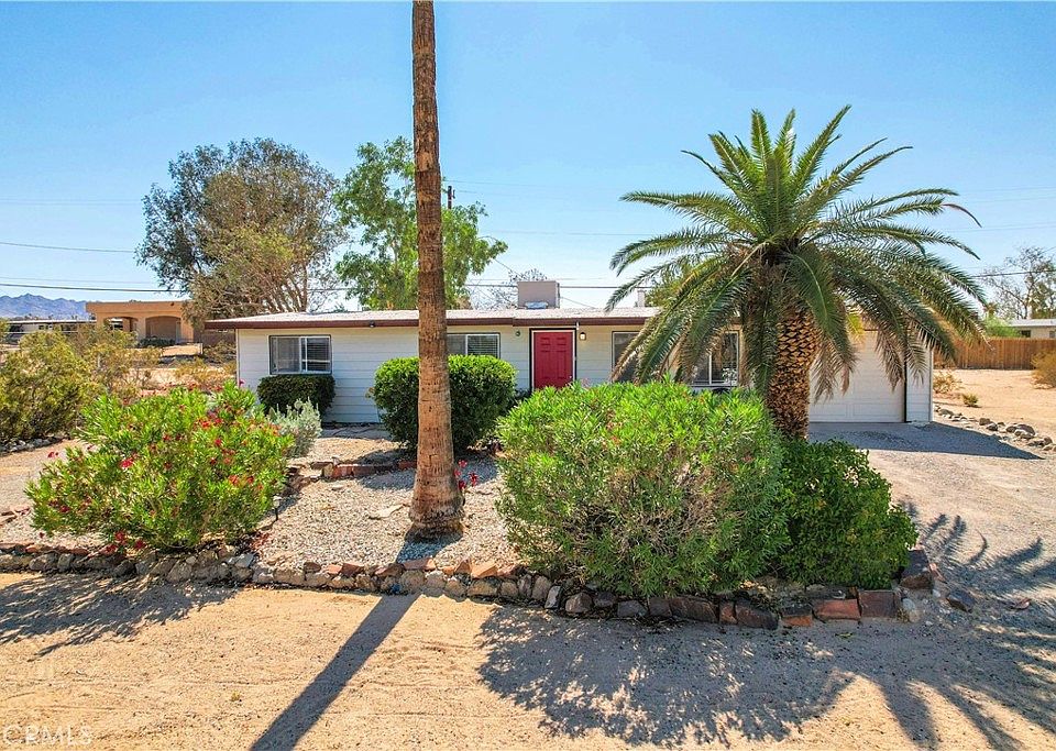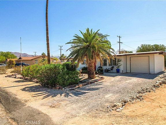 This charming 3 bedroom, 1 bathroom is everything you could ask for. Located in the Chocolate Drop area of 29 Palms, this house is perfect for anyone. Pulling up to the house the two mature palm trees in the front yard give this home a feel of Palm Springs in 29 Palms. All of the landscaping including mature shrubs in the front and backyard are all on their own automatic sprinkler system. Walking into the home you are immediately greeted by pristine porcelain tiles through the home that have all been replaced. All three bedrooms are well sized and in close proximity to each other. The entire home is equipped with new blinds so you can adjust the light throughout the entire day. The bathroom has been partially remodeled and the kitchen has been completely redone. A small covered back patio gives you the feeling of peace and isolation while you grill dinner in the backyard. The adjacent lot next door is also included in the sale giving you more relaxation knowing that no one can build there. Just 8.8 miles from the Joshua Tree National Park and close in proximity to new local businesses in 29 Palms, this home is a dream. Come schedule a showing today!!